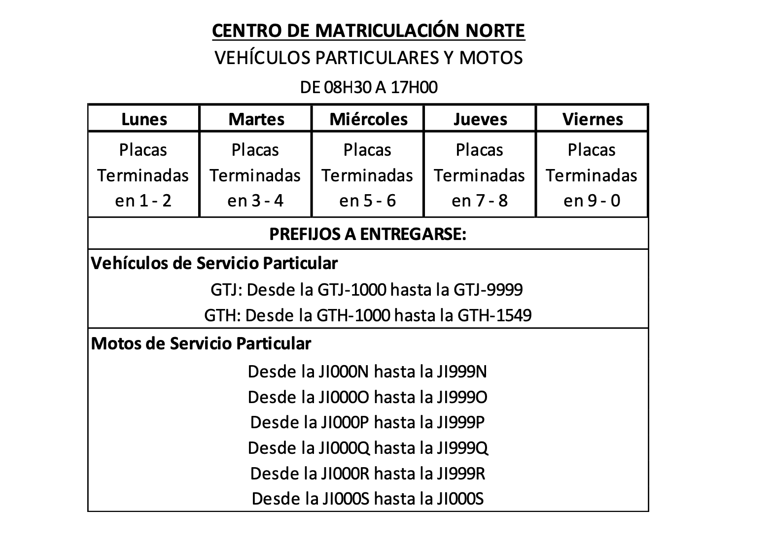 Para el retiro de placas, los usuarios podrán acercarse al Centro de Matriculación Norte, ubicado en la av. Narcisa de Jesús o al Centro de Matriculación de la vía a Daule, de acuerdo al siguiente programa: