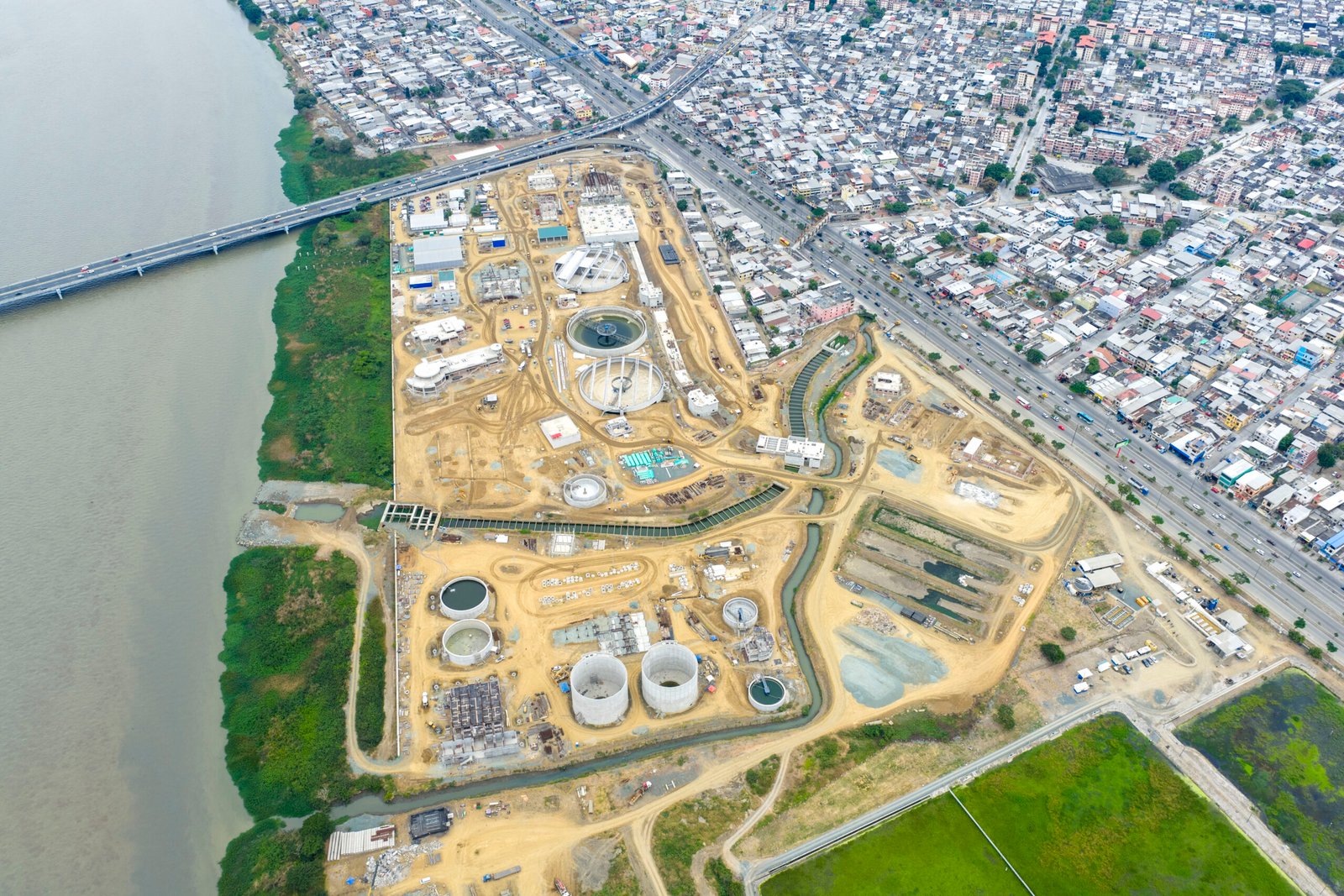 La Planta de Tratamiento de Aguas Residuales (PTAR) Los Merinos, ubicada en el norte de Guayaquil, registra un avance del 64,62% y se perfila como la obra hidrosanitaria más grande de Ecuador. Con una inversión de USD 169,3 millones, esta planta, que estará operativa en 2026, atenderá a 1,5 millones de habitantes, equivalente al 52% de la población de la ciudad, procesando 7,90 m³ de aguas residuales por segundo.