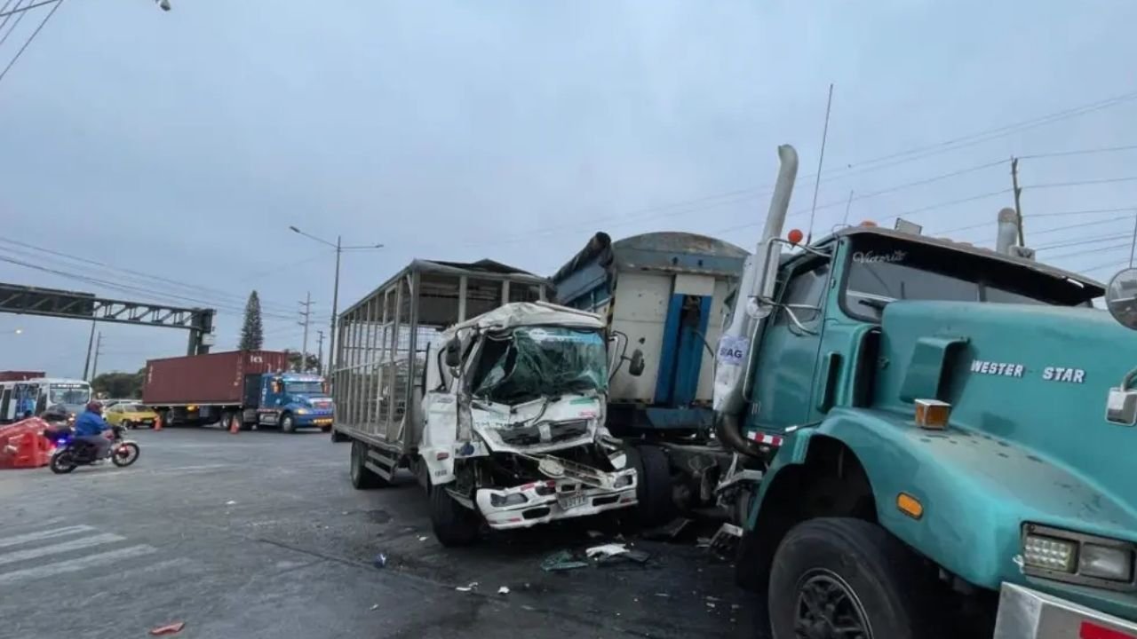 La madrugada de este lunes 20 de octubre, un camión y un tráiler colisionaron en el kilómetro 15.5 de la Vía a Daule, al norte de Guayaquil. El siniestro ocurrió alrededor de las 03:30, según reportes de la Agencia de Tránsito y Movilidad (ATM), que también alertó sobre el alto flujo vehicular en la zona.