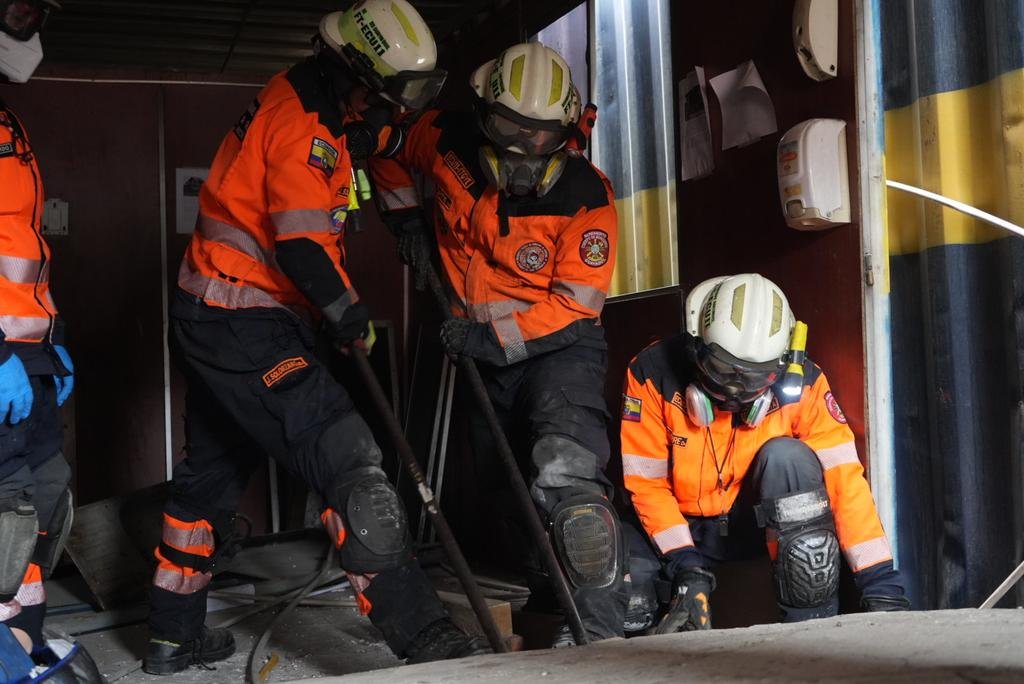 Los ejercicios, realizados en la Academia del Bombero de Guayaquil, involucraron a 51 especialistas del equipo de rescate urbano y se extendieron por 46 horas continuas, simulando condiciones reales de un terremoto con estructuras colapsadas, accesos bloqueados y víctimas atrapadas. Bajo la supervisión del teniente coronel Emanuel Chapeau, experto francés y mentor del proceso INSARAG, los rescatistas enfrentaron seis escenarios progresivos que incluyeron búsqueda física y tecnológica, rescate en niveles intermedios, apuntalamiento de accesos, maniobras en altura y atención médica de emergencia.