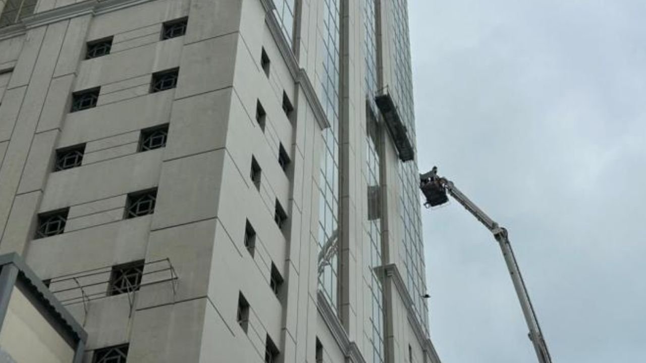 Pánico en La Previsora: trabajadores quedan atrapados en andamio a gran altura