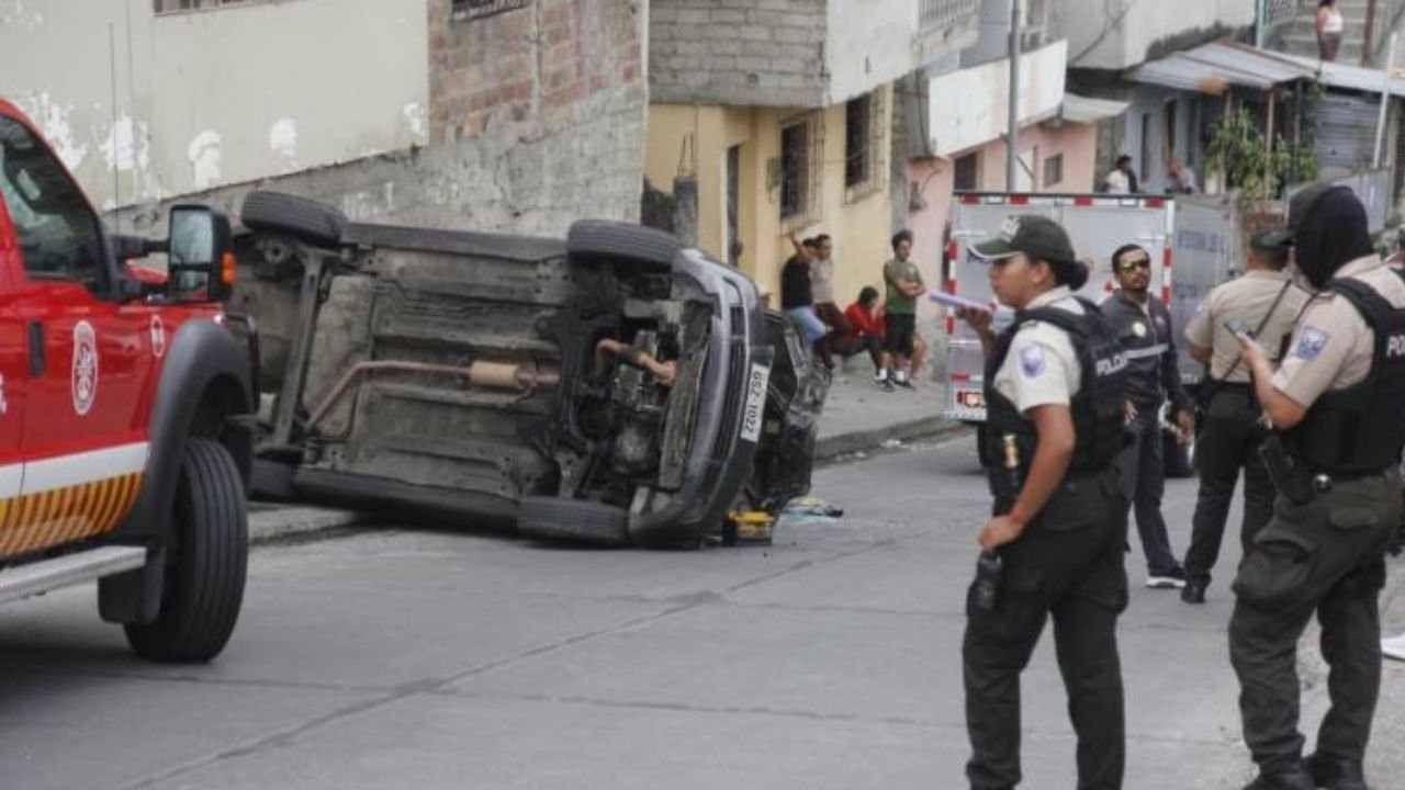 El automotor terminó volcado, mientras los atacantes huyeron del lugar, generando alarma entre los residentes. Personal de la Policía Nacional y de Criminalística acudió para recabar indicios.