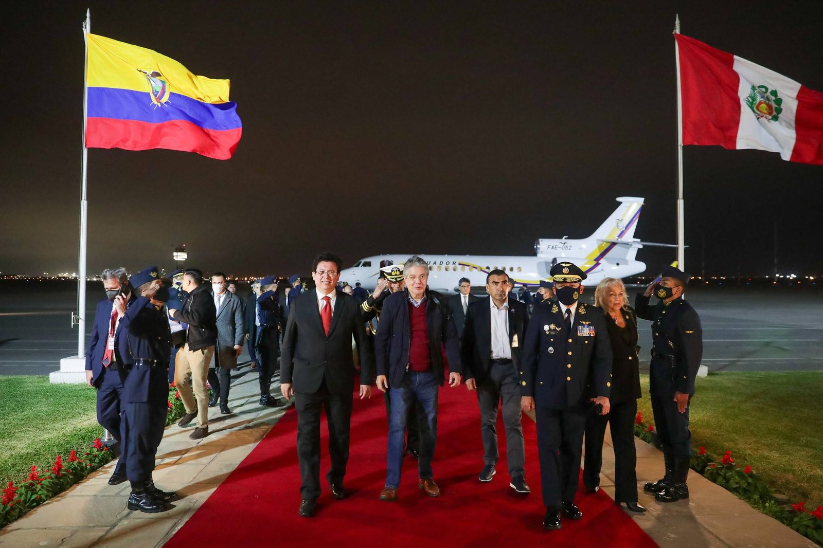 El mandatario ecuatoriano se desplazó a Lima acompañado por su canciller, Juan Carlos Holguín; el ministro de Producción; Julio José Prado; y el secretario general de Comunicación, Leonardo Laso.