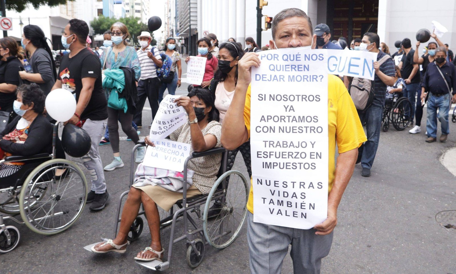 - Guayaquil, Ecuador, jueves 18 de agosto del 2022 Enfermos catastróficos y personal de clínicas de diálisis, realizaron un plantón en los bajos de la Corte Constitucional y luego en la Gobernación en Guayaquil, para exigir se proceda al pago de los 30 millones adeudados, sentencia que fue emitida por la Corte hace 2 años. Fotos:César Muñoz/API