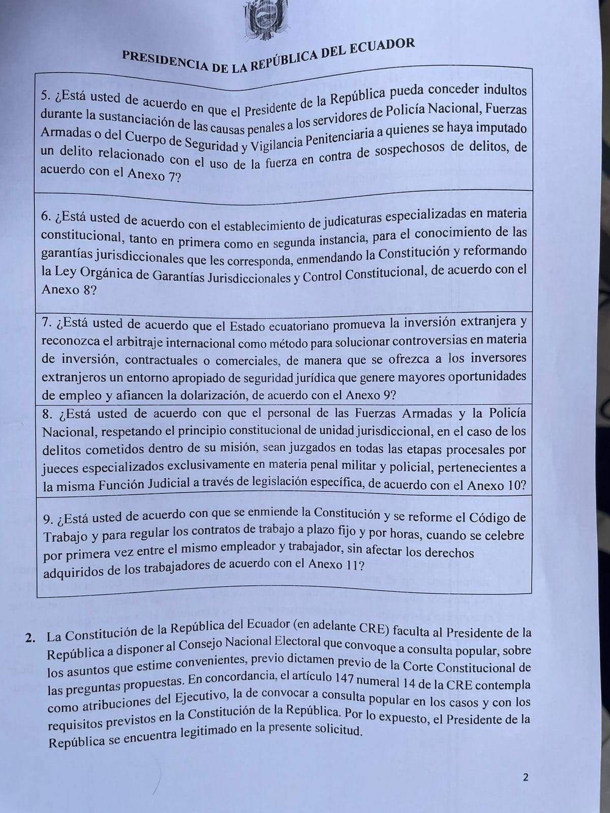 El Gobierno Nacional ha entregado el segundo bloque de preguntas para la Consulta Popular, lo que permitirá obtener resultados y acciones concretas que beneficien a todos los ecuatorianos.