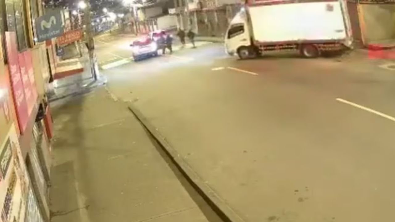 En las imágenes se observa cómo una camioneta adelanta al vehículo pesado y frena bruscamente tras un rompevelocidades. Instantes después, otro automóvil bloquea parcialmente la vía. Al notar que varios ocupantes descendían con armas de fuego, el conductor reaccionó rápidamente, dio marcha atrás y huyó del lugar. Los agresores realizaron disparos, pero no lograron detenerlo.