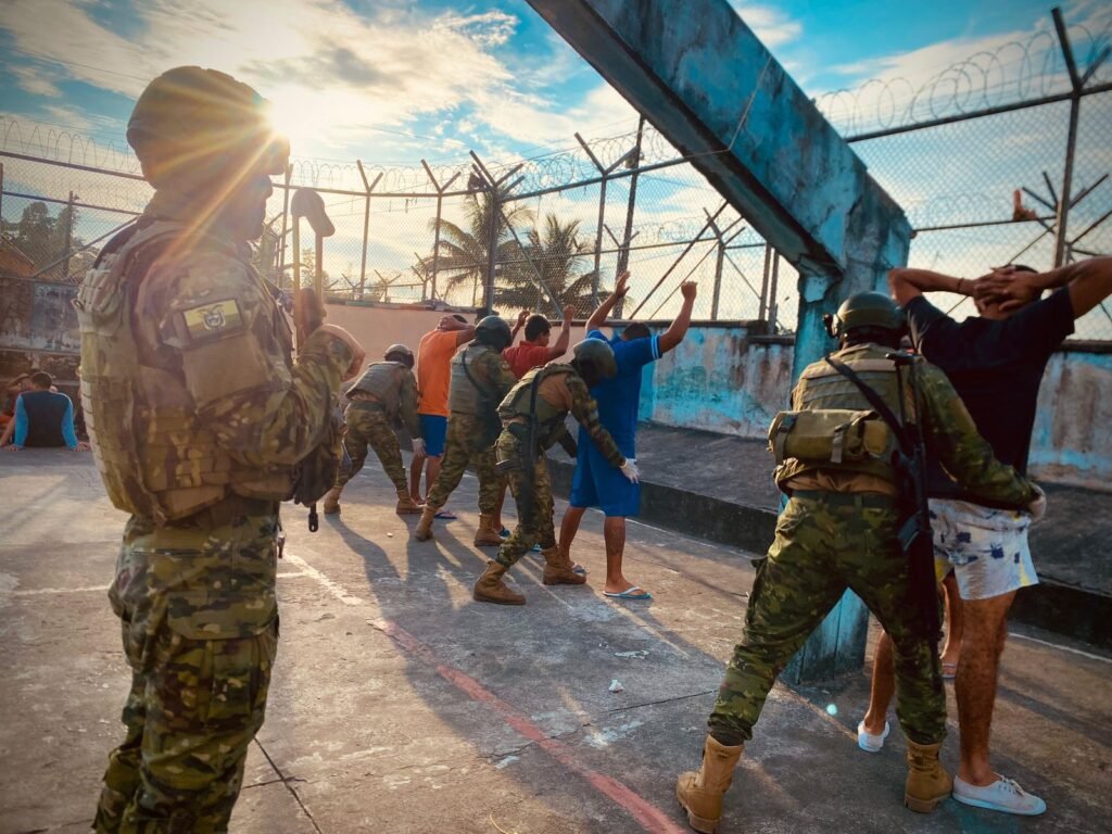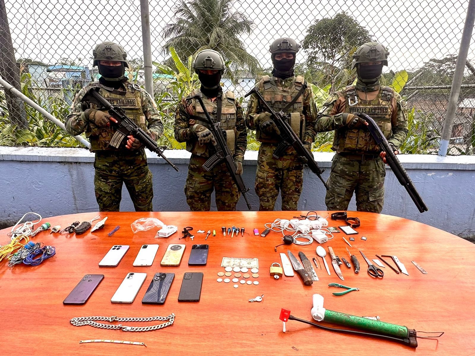 El Ejército Ecuatoriano ejecutó operaciones en apoyo a las instituciones estatales en el Centro de Privación de Libertad de Sucumbíos, con el fin de mantener el orden, la disciplina y garantizar la integridad de las personas privadas de libertad. La intervención, coordinada con autoridades penitenciarias, resultó en el decomiso de 8 terminales móviles, 7 cargadores de celular, 11 armas blancas, 8 pipas artesanales, 11 extensiones y dinero en efectivo, elementos que representaban riesgos para la seguridad interna del centro.