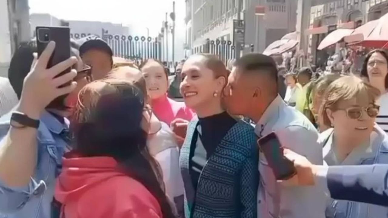 En las imágenes se observa a un hombre que se acerca a la mandataria, intenta besarla en los labios, la rodea con sus brazos y la toca sin consentimiento a la altura del pecho. Sheinbaum reaccionó de inmediato, retirando la mano del agresor.