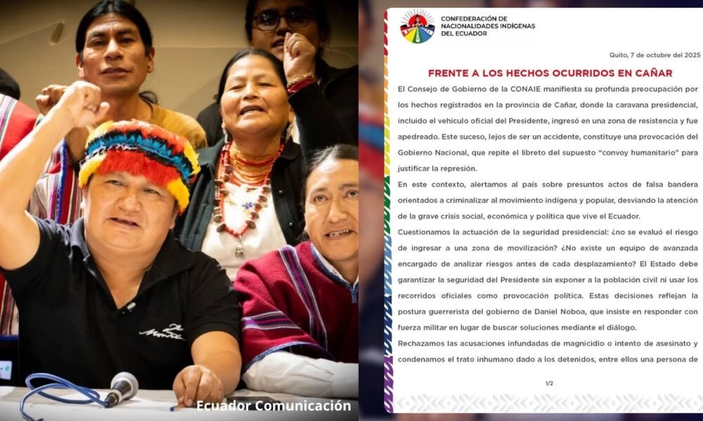 La Confederación de Nacionalidades Indígenas del Ecuador (Conaie) expresó su profunda preocupación por el ataque con piedras a la caravana presidencial, incluyendo el vehículo del presidente...